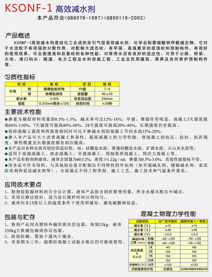 能大幅度降低用水量从而显著提高混凝土各龄期强度。在保持强度恒定时,则能节约水泥10%或更多。